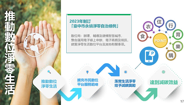 盧市長重視並深耕數位轉型,持續追求智慧治理與淨零排放雙軸轉型,致力讓台中成為數位力領先的城市。