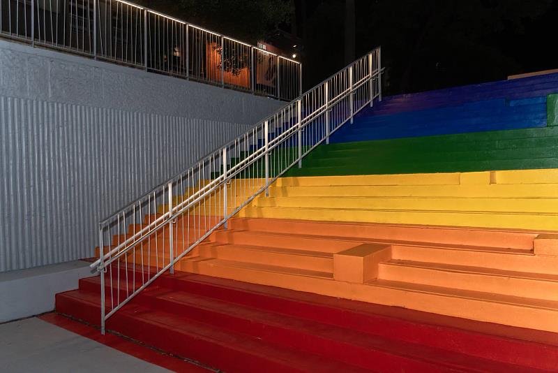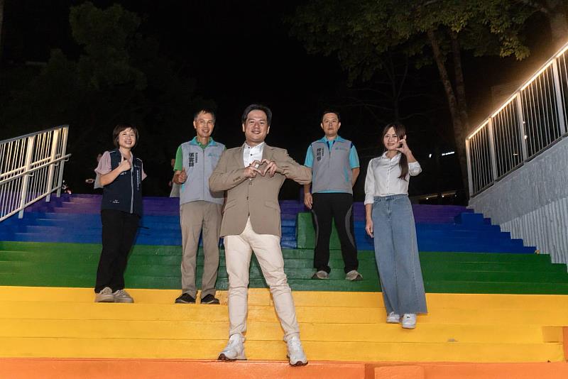 工務處補充,彩虹地景為市府同步進行的周邊美化工程,在東門城地下道打造繽紛彩虹階梯,展現「美感新竹」的城市風貌,為地方注入年輕活力,進一步活化公共空間,讓市民在夜間能更安心地走出戶外,享受宜人且安全的城市生活。